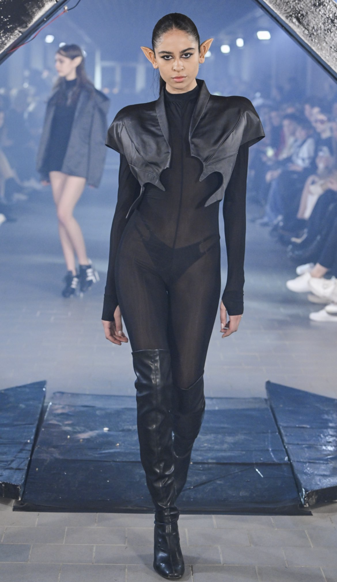 Creating a tech pack, which includes detailed specifications, measurements, fabric choices, trims, and construction details. Using the tech pack, the initial muslin sample and, after multiple fittings, pre-production sample are developed.